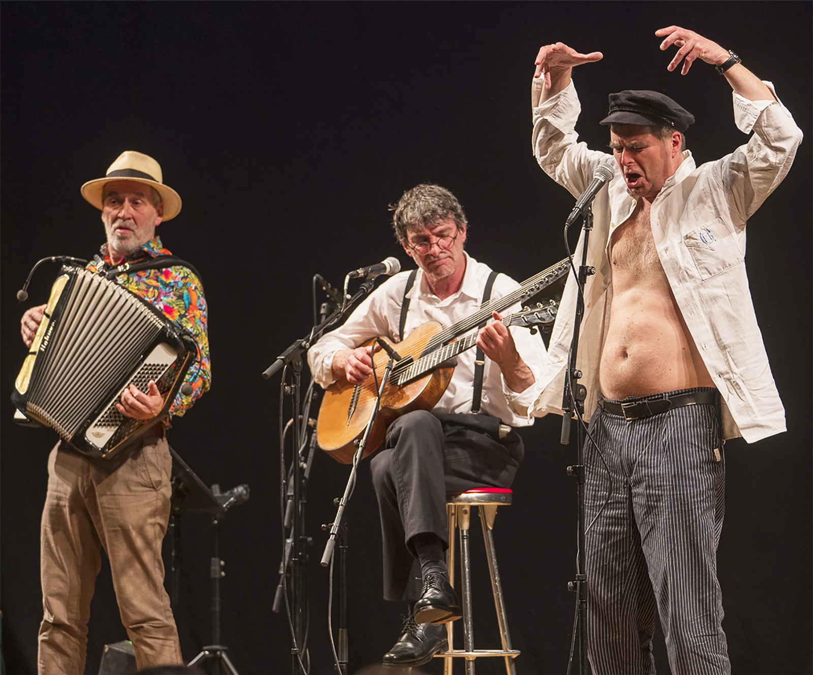 Mit vier Liedern und viel verzweifelter Moderation betraten – vorgeblich im Geiste Heinz Conrads – die drei Spätberufenen zum Herz ohne verletzen zu wollen die Bühne im Schutzhaus zur Zukunft, ohne auch nur im Geringsten zu ahnen, was für eine Zukunft, welche Dose der Pandora sie sich damit eröffnet haben: 30 Jahre frisch gewaschene Hemden, lustige Kopfbedeckungen und Perücken, viel Tamtam und auch Musik, oder, so die Kurzformel:
